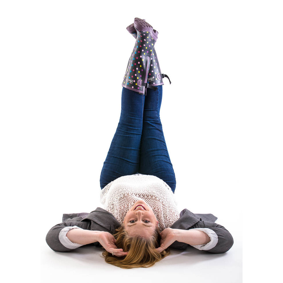 Ankle Height Rain Boots - Black with White Spots - Wide Foot - Easy to Slip On