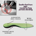 Supportive heel cradle and shock absorbing pads on heel and balls of feet