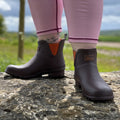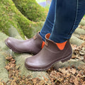 Ankle Height Rain Boots - Chocolate with Orange Trim - Wide Foot - Easy to Slip On