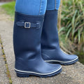 Wide Calf Rain Boots - 15 to 18 inch calf - Navy with Cream Trim - Wide in Foot and Ankle